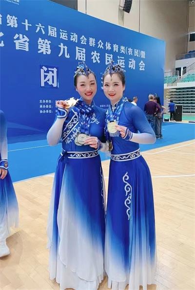 熱烈祝賀謝芳同志(照片中第一排從左到右第三位)在湖北省第十六屆運動會群眾類(農(nóng)民)健身操團體比賽中獲得一枚金牌,四枚銀牌,團體總分第一的優(yōu)異成績。